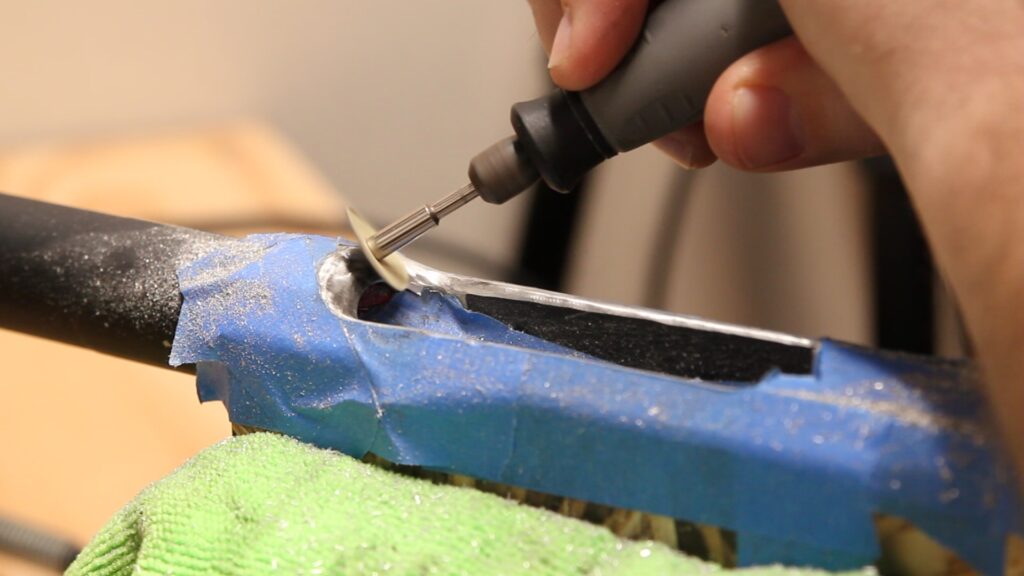 With the prep work in place, I started carving with the Tungsten Carbide Cutter at medium speed. Against an aluminum receiver, I found that this just barely breaks the surface and makes it very difficult to mess up.